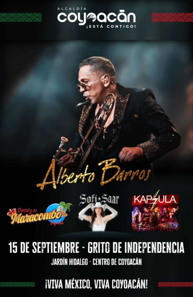 Entre los conciertos en Coyoacán para las fiestas patrias destacan talentos nacionales e internacionales como Alberto Barros, Daniel y su Maracombo, Sofi Saar y Kapsula, quienes encenderán el escenario con cumbia, popteño y espectáculos llenos de energía.