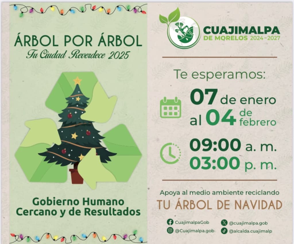 La recolección comenzó el 10 de enero y concluirá el 7 de febrero. Quienes deseen donar su árbol pueden hacerlo de lunes a viernes, en un horario de 9:00 a 17:00 horas.