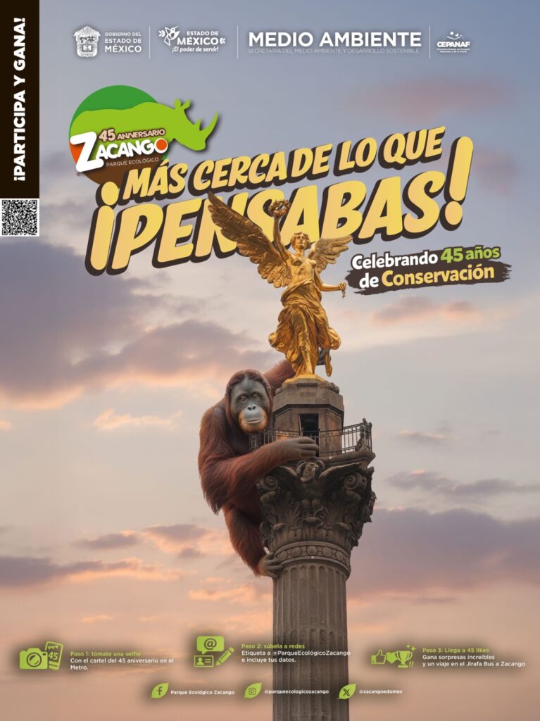 El Parque Ecológico Zacango salió del Estado de México para instalarse en los andenes del Metro capitalino. Como parte de su 45 aniversario, el gobierno mexiquense lanzó la campaña “¡Más cerca de lo que pensabas!”, que lleva imágenes de las especies del parque a distintos espacios de ese sistema de transporte.
