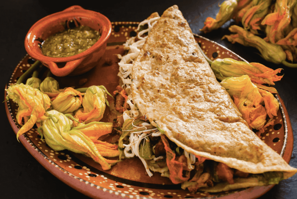 - Quesadillas de flor de calabaza y sopes de chapulín, de Coatepec, Estado de México
