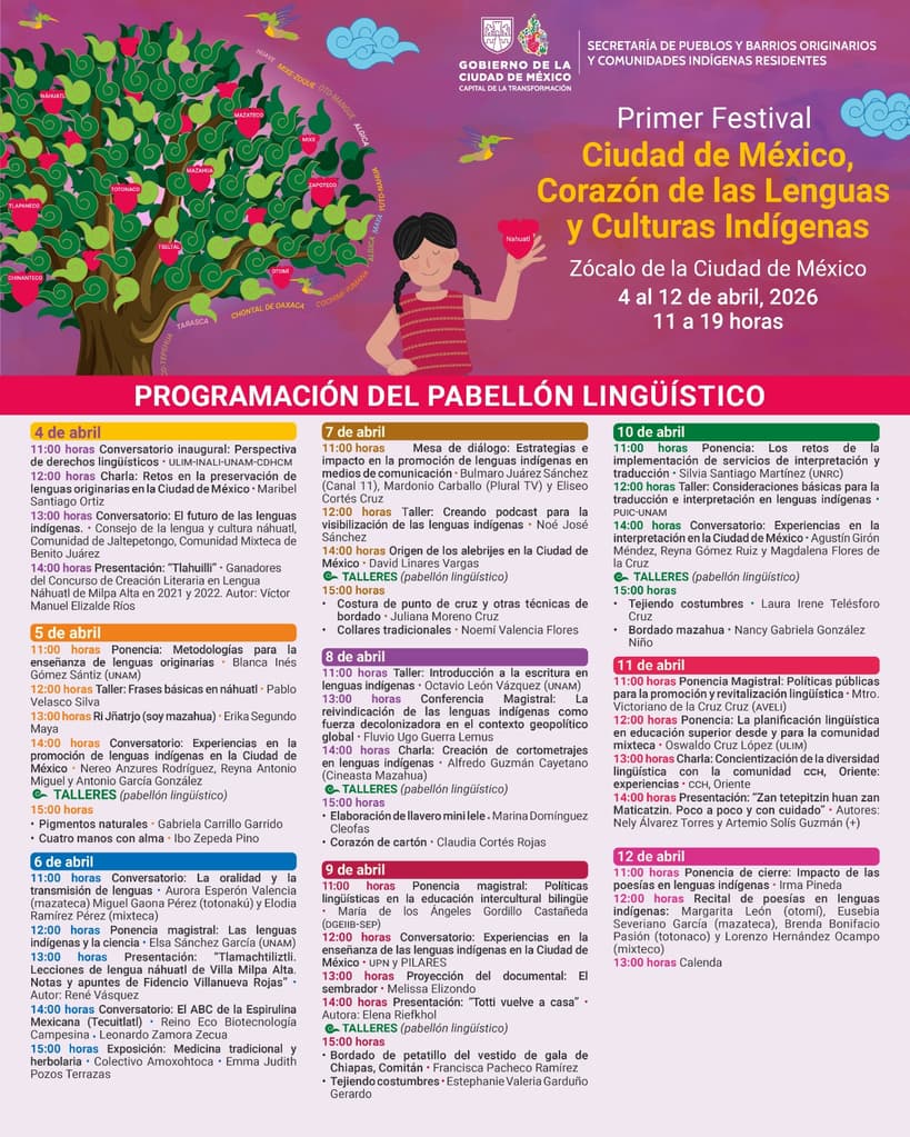 Como parte del “Primer Festival Ciudad de México, Corazón de las Lenguas y Culturas Indígenas”, habrá talleres de traducción e interpretación de lenguas indígenas, recitales de poesía y pláticas sobre la importancia de la diversidad lingüística.
