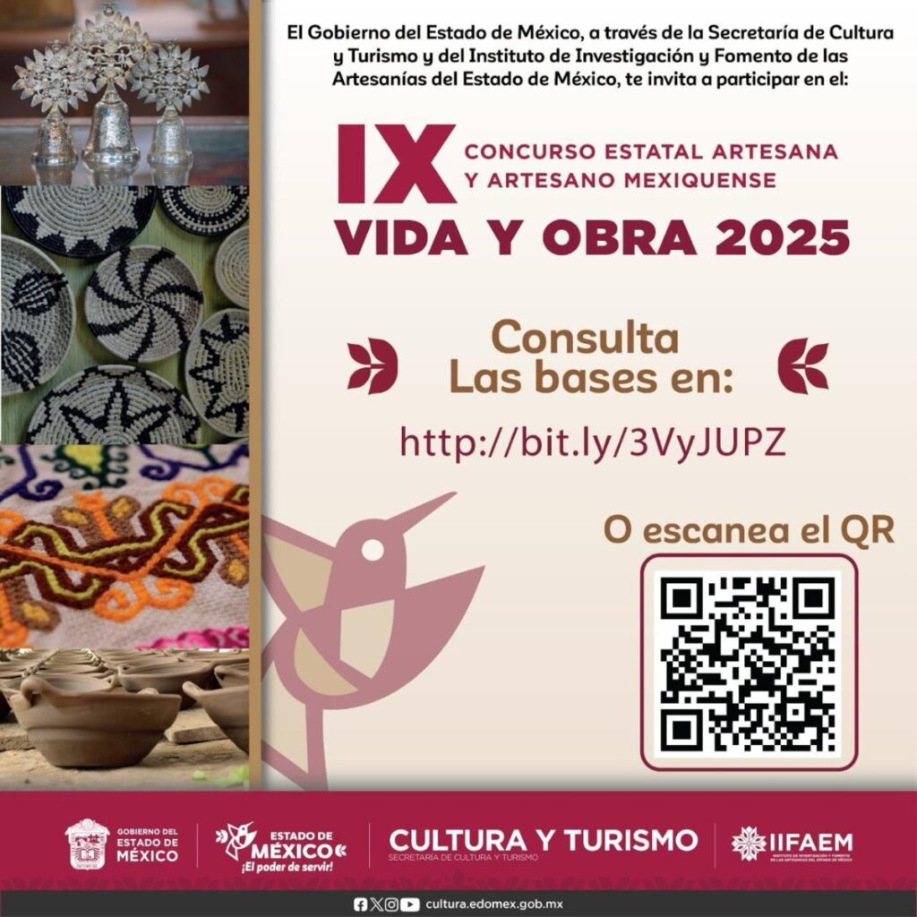 El IX Concurso Estatal Artesana y Artesano Mexiquense “Vida y Obra 2025” regresa al Estado de México. Este concurso busca incentivar la participación de los maestros y maestras artesanas del Edomex, fomentando la calidad y creatividad de sus obras de arte popular.