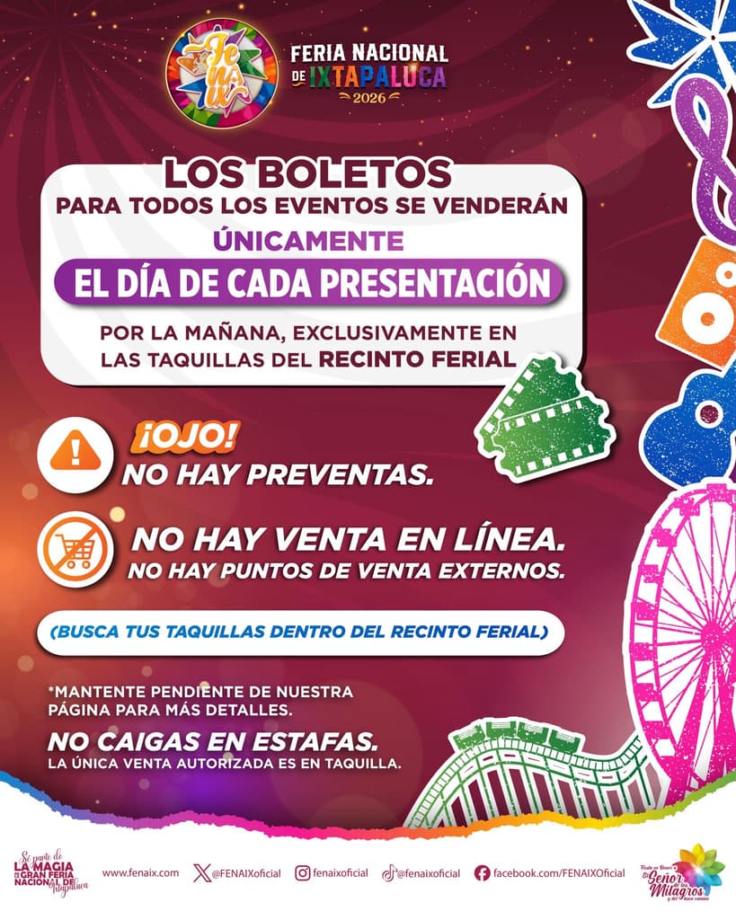 No habrá preventas ni venta en línea o por redes sociales, así que desconfía de cualquier otra opción.