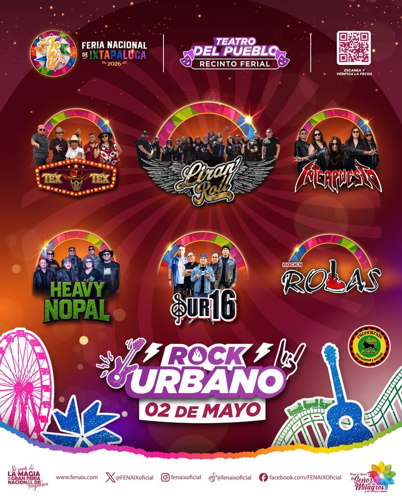 La Feria de Ixtapaluca 2026 llega al oriente del Edomex con una cartelera musical para todos los gustos: desde el regional mexicano de Grupo Firme hasta el rock urbano de bandas como Tex Tex, Heavy Nopal y Liran Roll.