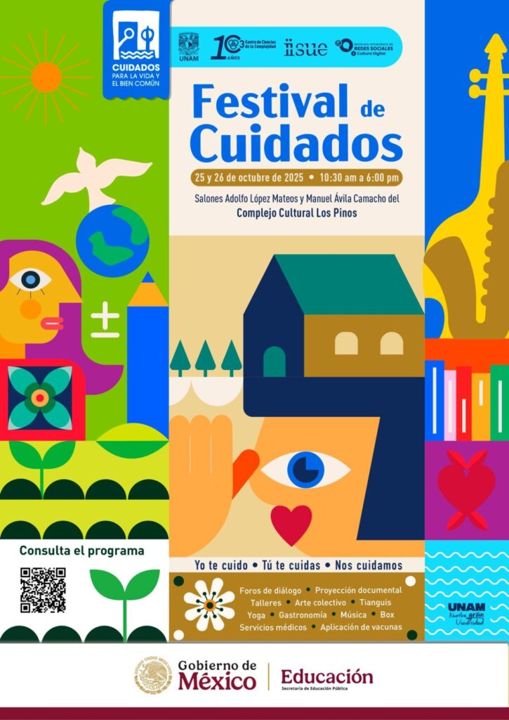 La SEP y la UNAM invitan al Festival de Cuidados 2025, cuyo objetivo es generar una reflexión colectiva sobre el cuidado como una forma esencial de habitar el mundo.
