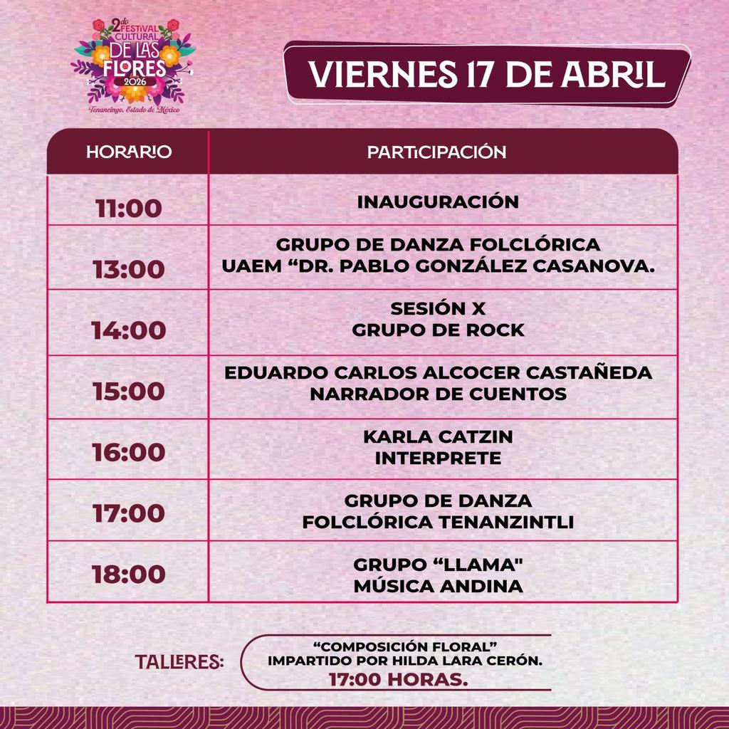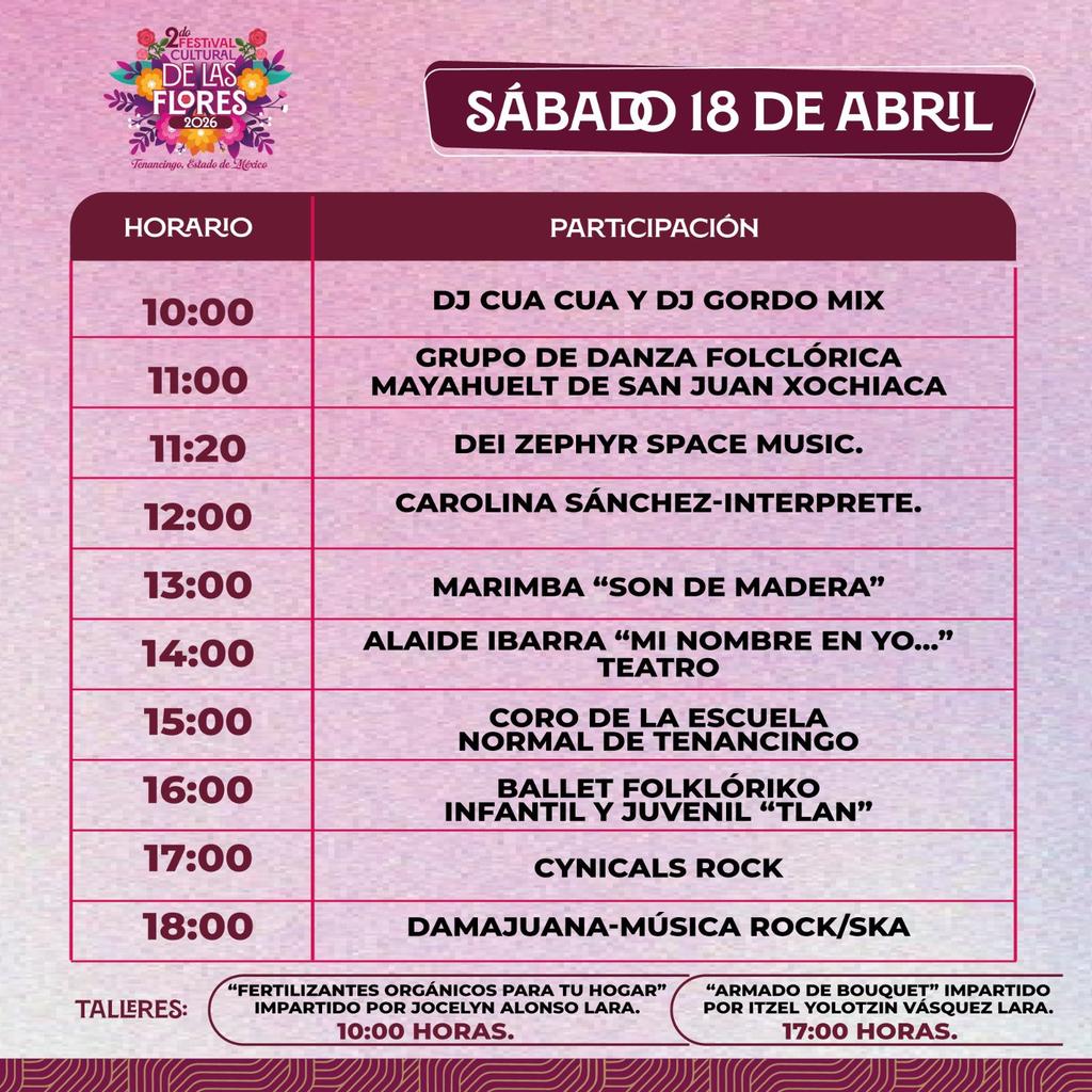 Si buscas un plan de fin de semana con vibra primaveral, lánzate al Segundo Festival Cultural de las Flores Tenancingo 2026, donde habrá más de 45 actividades: desde conciertos, danza folclórica y teatro, hasta talleres de composición floral y fertilizantes.
