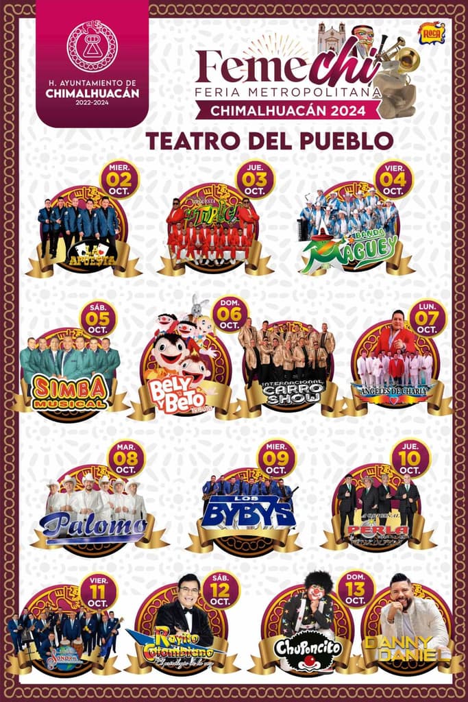 Además, en el Teatro del Pueblo de Chimalhuacán también habrá una emocionante programación de artistas y agrupaciones musicales. Acá te decimos quiénes se presentarán del 2 al 13 de octubre en la Feria Metropolitana: