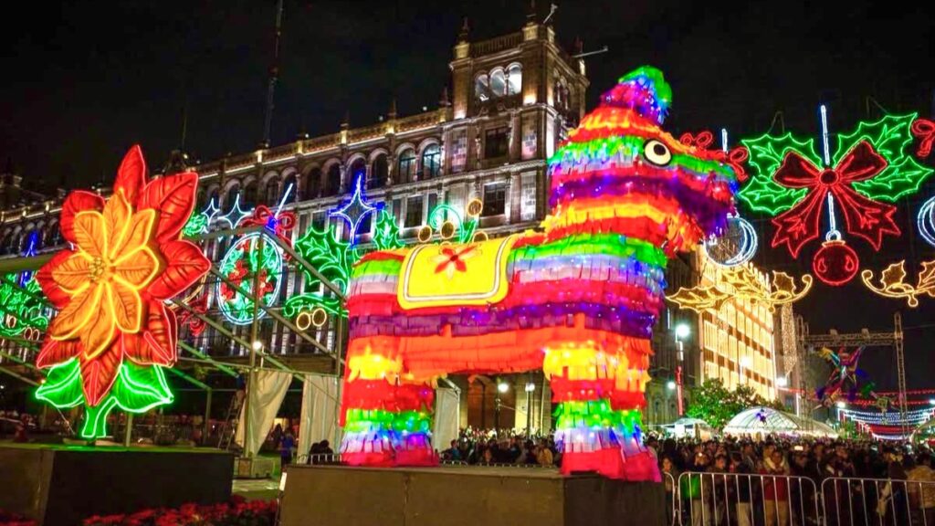 Durante estos días, el Zócalo se transforma en una auténtica villa navideña con atractivos que van mucho más allá del famoso túnel luminoso. Árboles monumentales decorados con nochebuenas, esculturas iluminadas, un nacimiento monumental, espectáculos culturales diarios y una feria de artesanías hacen de este festival una de las mejores actividades navideñas en la CDMX.