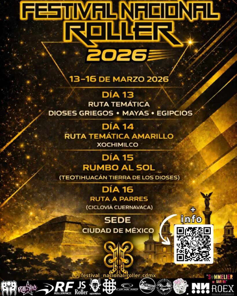 A la CDMX llega el Festival Nacional Roller 2026, uno de los eventos deportivos y urbanos más esperados. Este se celebrará del 13 al 16 de marzo e incluirá rutas de patinaje, tanto nocturnas como diurnas, diseñadas para participantes de diversos niveles.