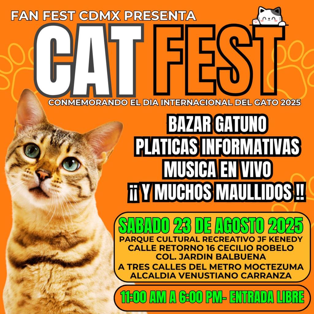 Y como los michis merecen fiesta doble, el próximo sábado 23 de agosto de 2025 se celebrará en la CDMX el esperado Cat Fest.