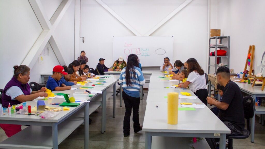 Los talleres tienen opciones para construir máscaras, pintar murales colectivos y actividades sensoriales para primera infancia, además de módulos creativos con horarios específicos.