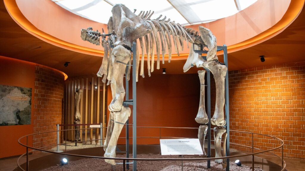 En su sala principal se puede ver la reconstrucción de un esqueleto completo de mamut de 3.60 metros de alto y 7 metros de largo, además de piezas rescatadas de antiguas trampas de caza.