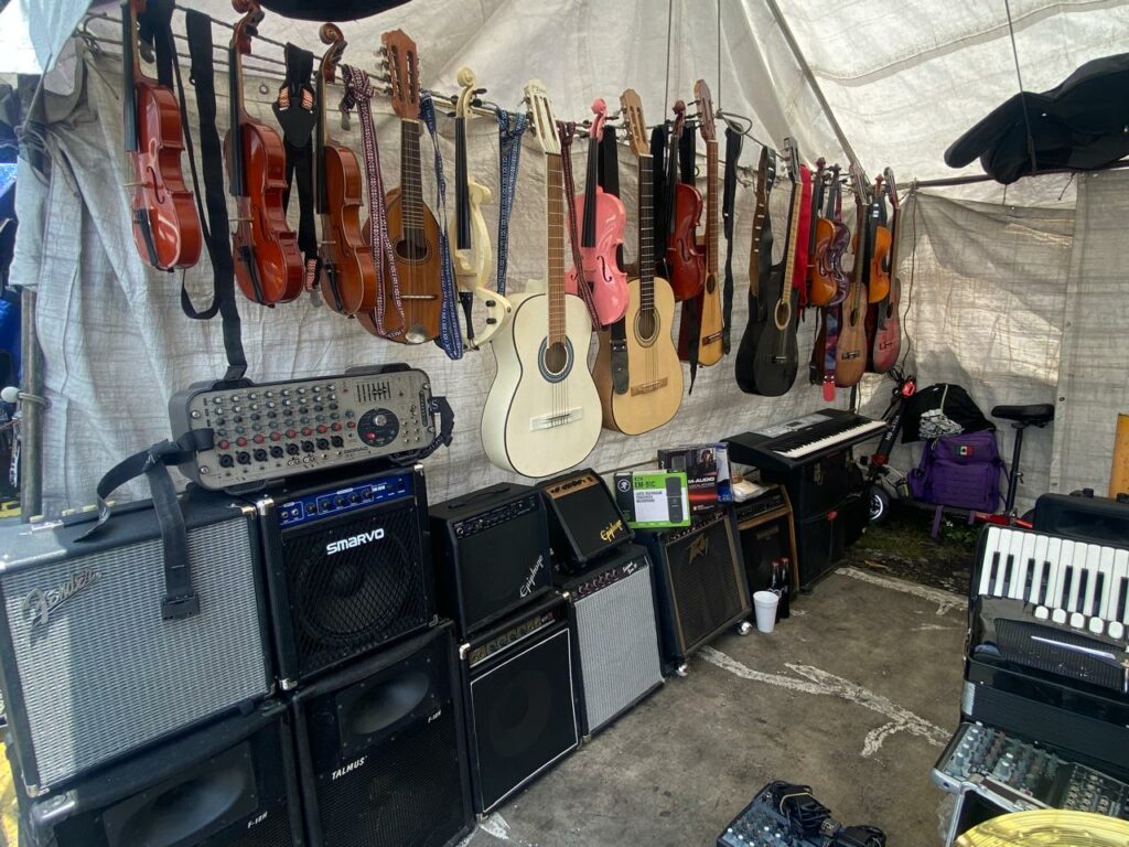 “Podemos ver constantemente aquí a Óscar Zárate, de El Tri, o a Rasheed Durán, de Los Daniels. Y hay muchos músicos famosos que son locatarios. Por ejemplo, el señor Rafael Miranda es integrante de los K’comxtles. Está colaborando ahorita con Rubén Albarrán”, cuenta Guillermo.