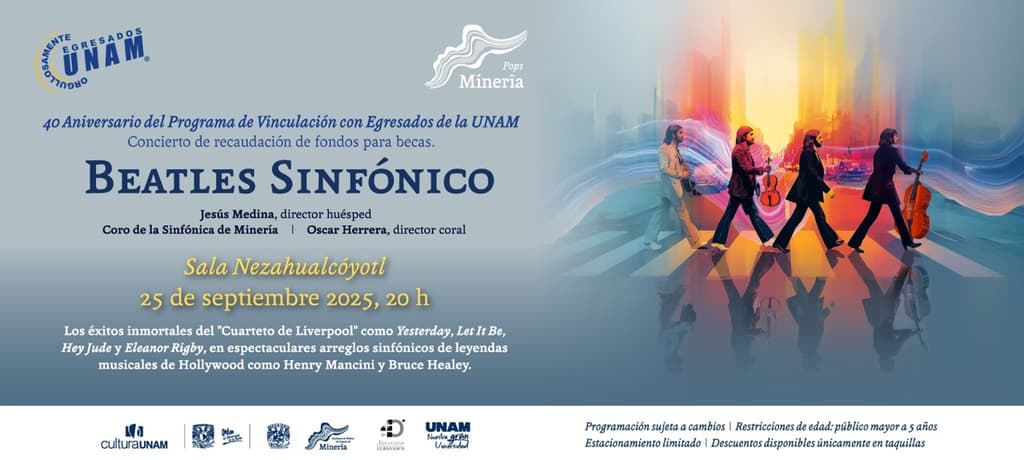 La música de The Beatles regresa a la Ciudad de México con un toque majestuoso. La Orquesta Sinfónica de Minería presentará un concierto sinfónico tributo al Cuarteto de Liverpool en la Sala Nezahualcóyotl el próximo jueves 25 de septiembre a las 20:00 horas.