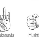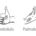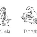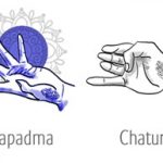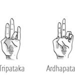 3. Katakamukha (abrir un brazalete). Los dedos índice, corazón y pulgar van juntos. El anular y el meñique separados, en ángulos distintos, todos estirados. Intercala estos tres mudras y a bailar.