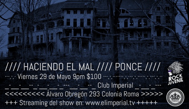 Este viernes 29 de mayo a las 21 horas, Ponce y Haciendo el mal se presentan en El Imperial. Tenemos 2 pases dobles para las primeras dos personas que contesten correctamente la siguiente trivia.