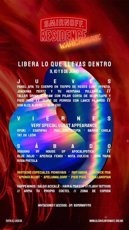 Smirnoff Residence: Warehouse estará abierta al público mayor de edad del jueves 9 al sábado 11 de junio. Si quieres asistir, escribe por DM a la cuenta de Instagram de Smirnoff: @smirnoffmx