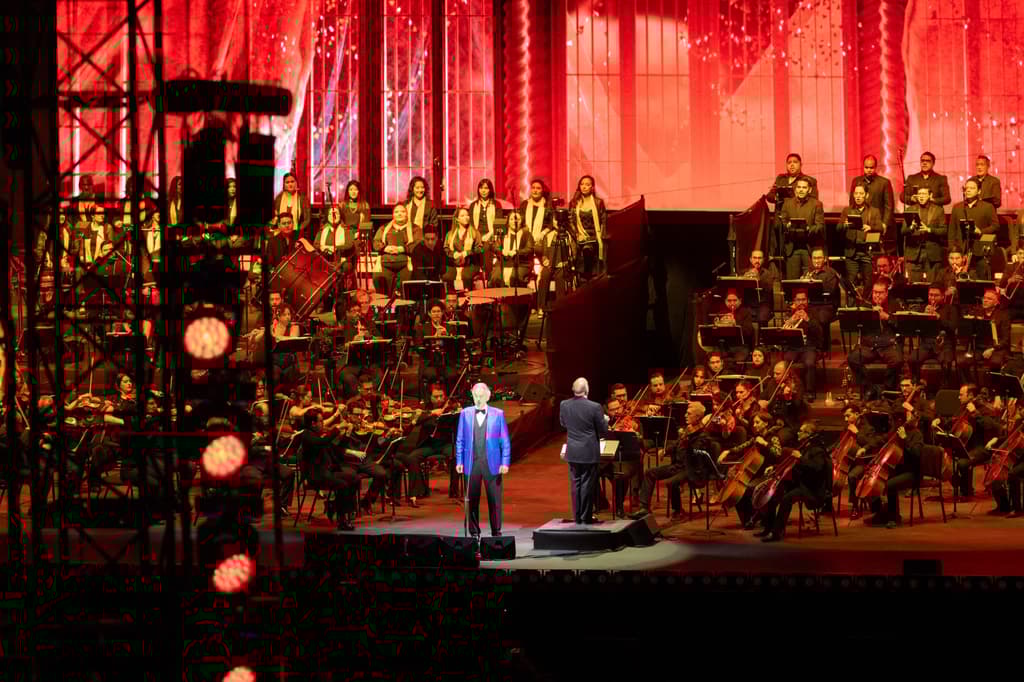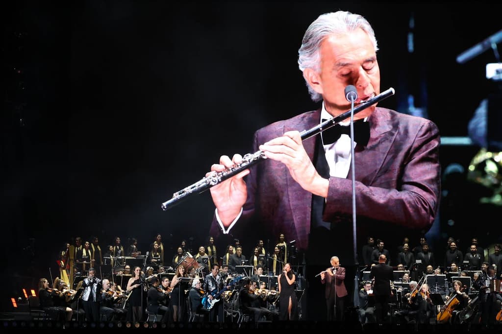 El tenor italiano Andrea Bocelli ofreció un emotivo concierto en el Zócalo capitalino, donde las emociones se movieron de la ópera a la cumbia, con la participación de Los Ángeles Azules y Ximena Sariñana.