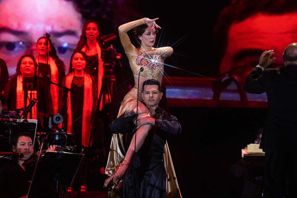 El espectáculo incluyó la participación de la violinista Rusanda Panfili, quien interpretó Libertango, además de la presencia de bailarinas y bailarines en escena.