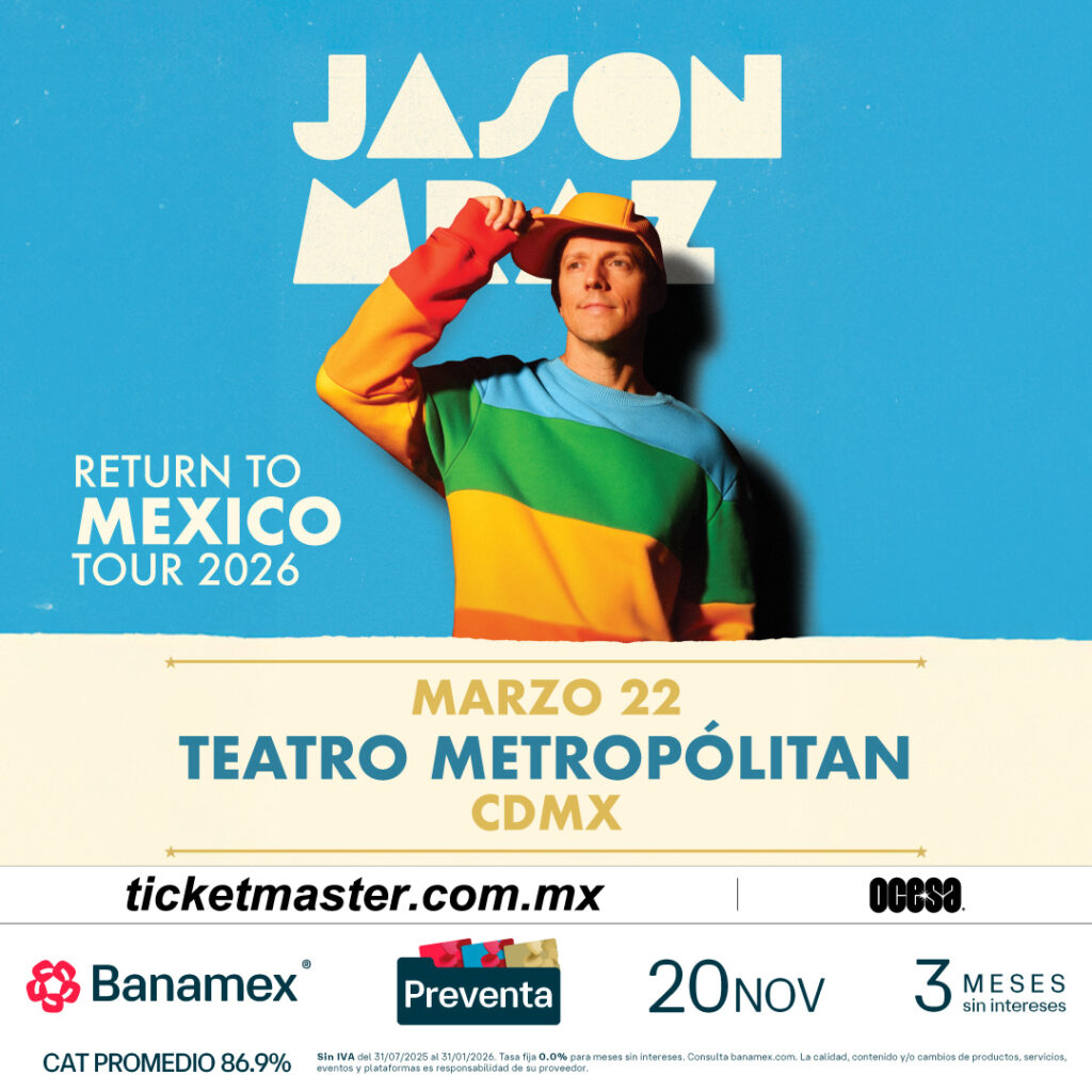 El cantautor estadounidense traerá la buena vibra de sus rolas de pop-rock-folk-soul para hacerte pasar una noche bien suave. Algunas que sus fans esperan escuchar son “The remedy (I won’t worry)”, “I’m yours” y “I won’t give up”.