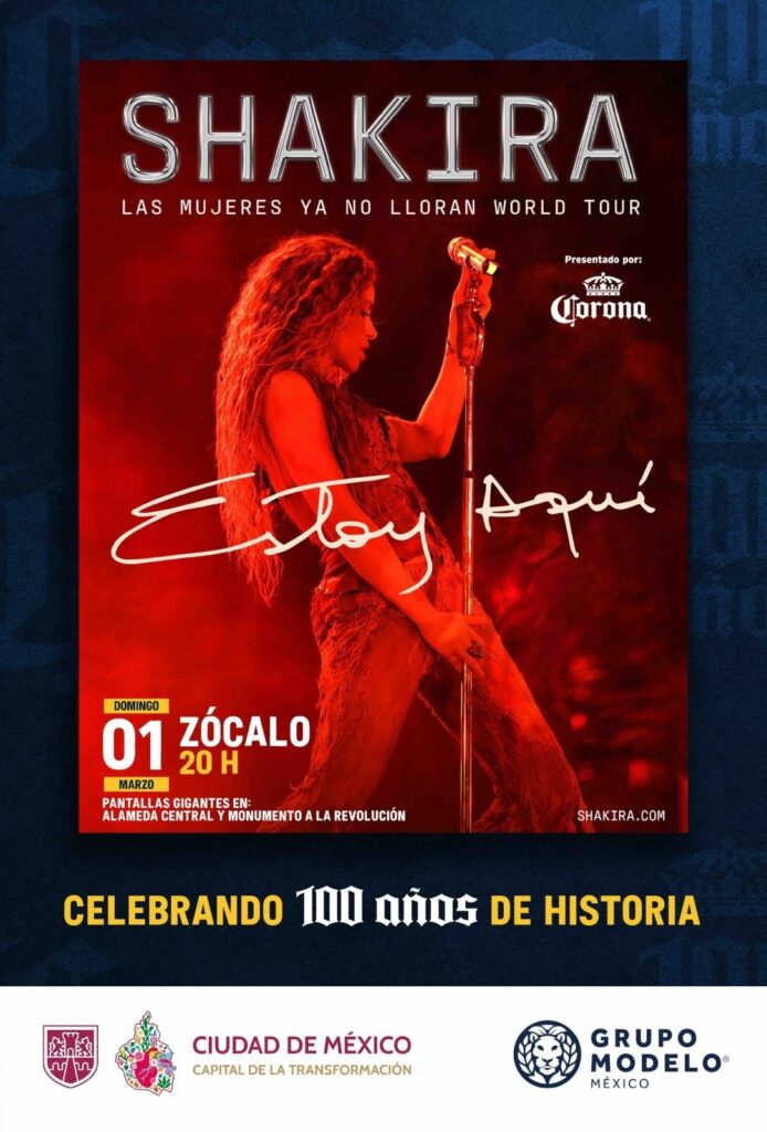 La loba colombiana quiere agradecer a sus fans mexas por todo el apoyo que le han dado con el Las Mujeres Ya No Lloran World Tour, y ofrecerá un concierto gratuito. Será su segunda vez en el Primer Cuadro de la capital, y promete estar buenísimo con todos sus éxitos.