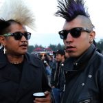Las playeras y paliacates negros, los maquillajes, las chamarras y las botas de piel destacaron entre los fans, quienes usaron los recesos entre bandas para tirarse al pasto, descansar los pies o comer.