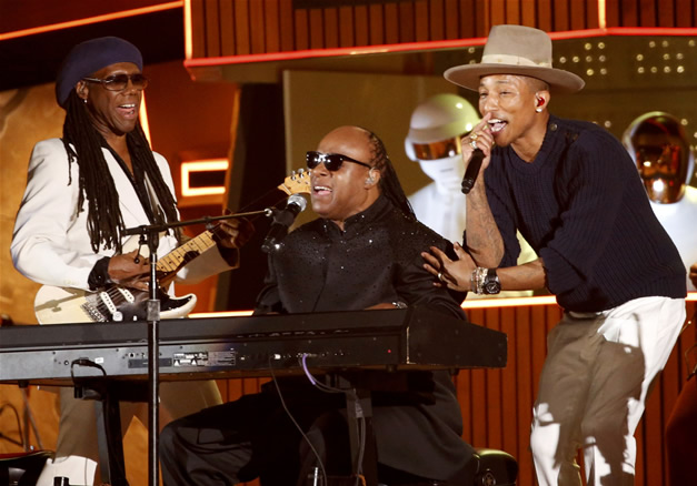 Anoche se llevó a cabo la 56 entrega de los premios Grammy, donde los robots de Daft Punk hicieron su regreso triunfal al escenario al interpretar en vivo ‘Get Lucky’ del Random Access Memories, junto a Pharrell Williams, Stevie Wonder y Nile Rodgers.