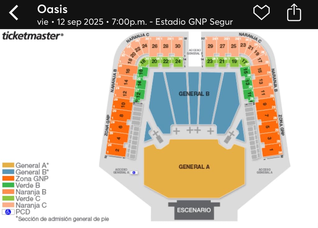 Los precios para los conciertos de Oasis en México rondan entre los $1,377 y los $14,769 con cargos. Por supuesto, la mejor vista para ver a los hermanos Gallagher es la zona General A y la zona GNP, las cuales también puedes comprar en paquete VIP: