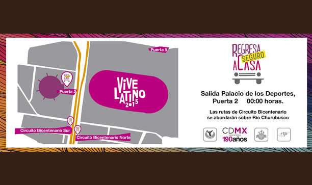 100 unidades de servicio expreso con sistemas de geolocalización, radio de comunicación vinculado con la Secretaría de Seguridad Pública del Distrito Federal, darán servicio de transporte por $7 a todos los asistentes que no tengan auto particular para regresar a casa después del Vive Latino.