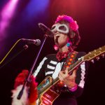 Después de Monareta y de The Hall Effect, el turno para salir al escenario fue de Andrea Echeverri, “La Ruiseñora”, quien apareció en el escenario vestida igual que los dos músicos que la acompañaban (guitarra y batería. Con un disfraz de calavera, una manta con la imagen de dos ruiseñores y dos cráneos (intercalados uno y uno) que ayudaban a crear el ambiente de un performance, la ex cantante de Aterciopelados explicó a los asistentes que su imagen que hacia alusión a un altar de muertos. Agregó que tanto en México como en Colombia todos los días hay que recordar a los muertos que ha dejado la guerra contra las drogas.