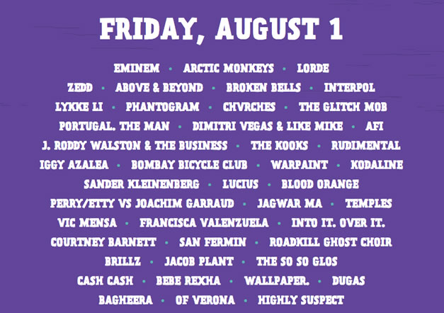 Los espera el Grant Park en Chicago con headliners como Eminem, Outkast, Calvin Harris, Skrillex -que también estarán en Coachella- y Kings of Leon.