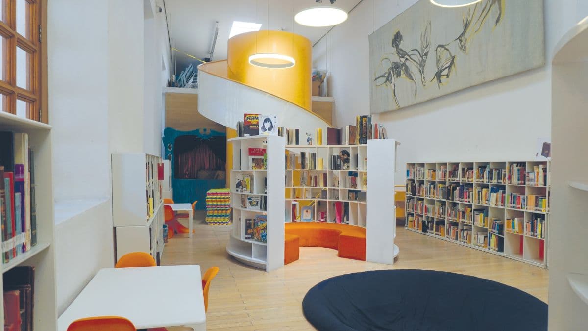 Aquí hay una librería que también es biblioteca. Tus peques pueden hojear y disfrutar los libros antes de decidir si los compras. Tienes cojines y sillones, y está permitido simplemente recostarse.