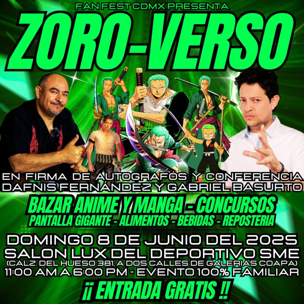 Uno de los grandes atractivos del Fan Fest será la presencia, por primera vez juntos, de los dos actores de doblaje que han dado voz en español a Roronoa Zoro, uno de los piratas más queridos del universo creado por el mangaka Eiichirō Oda.