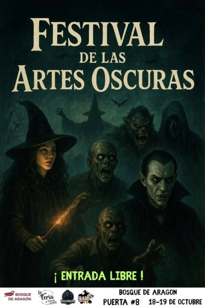 El Festival de las Artes Oscuras, con entrada gratuita, se realizará el sábado 18 y el domingo 19 de octubre de 2025 en el Bosque de Aragón. El horario es de 11:00 a 19:00 horas, hasta el anochecer. Para llegar a él, se debe ingresar por la Puerta 8 del parque. ¡Invita a todos tus seres queridos…, o enemigos!