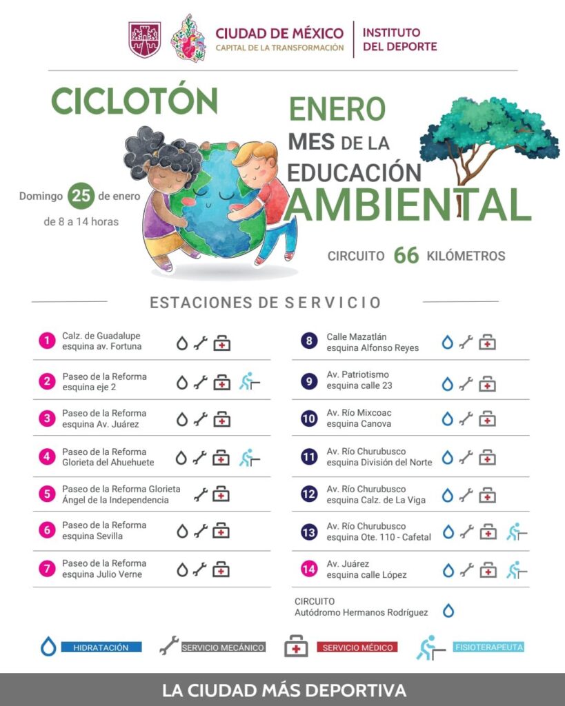 La cita para participar en el primer Ciclotón del año es el domingo 25 de enero. En un horario de 8:00 a 14:00 horas, las calles y avenidas podrán recorrerse libremente en bici, corriendo, trotando o patinando sin la presencia de automóviles.