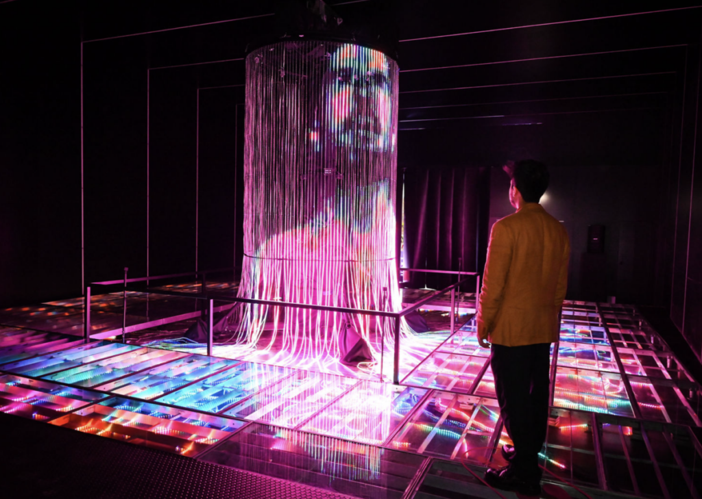 FLUX es una instalación de Ksawery Komputery, estudio especializado en instalaciones y esculturas “phygital”, cuyas luces interactivas reaccionan a la presencia y movimiento de quienes la visitan, gracias a cámaras de alta velocidad. Cada persona que recorre su espacio se convierte en un elemento activo de la obra de arte que generará algo inigualable con sus efectos visuales.