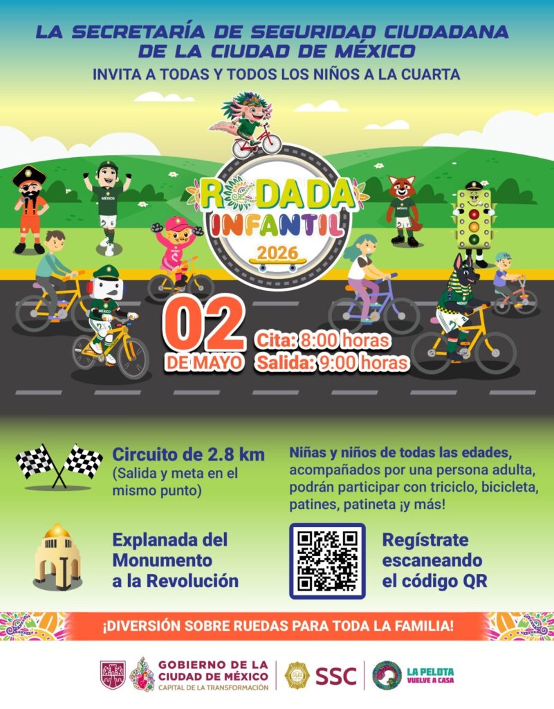 Esta rodada ciclista, organizada por la Secretaría de Seguridad Ciudadana (SSC) y diseñada para niñas y niños, tendrá un recorrido de 2.6 kilómetros. La ruta incluirá importantes avenidas, como Paseo de la Reforma y Avenida Chapultepec, iniciando y concluyendo en el Monumento a la Revolución.