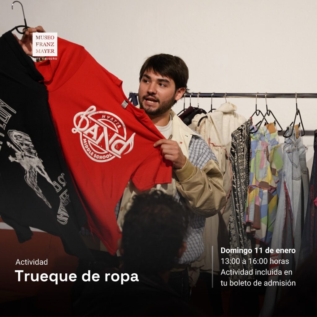 El Museo Franz Mayer llevará a cabo el Trueque de ropa el domingo 11 de enero. Esta actividad se realizará de 13:00 a 16:00 horas y está incluida con la entrada al museo.