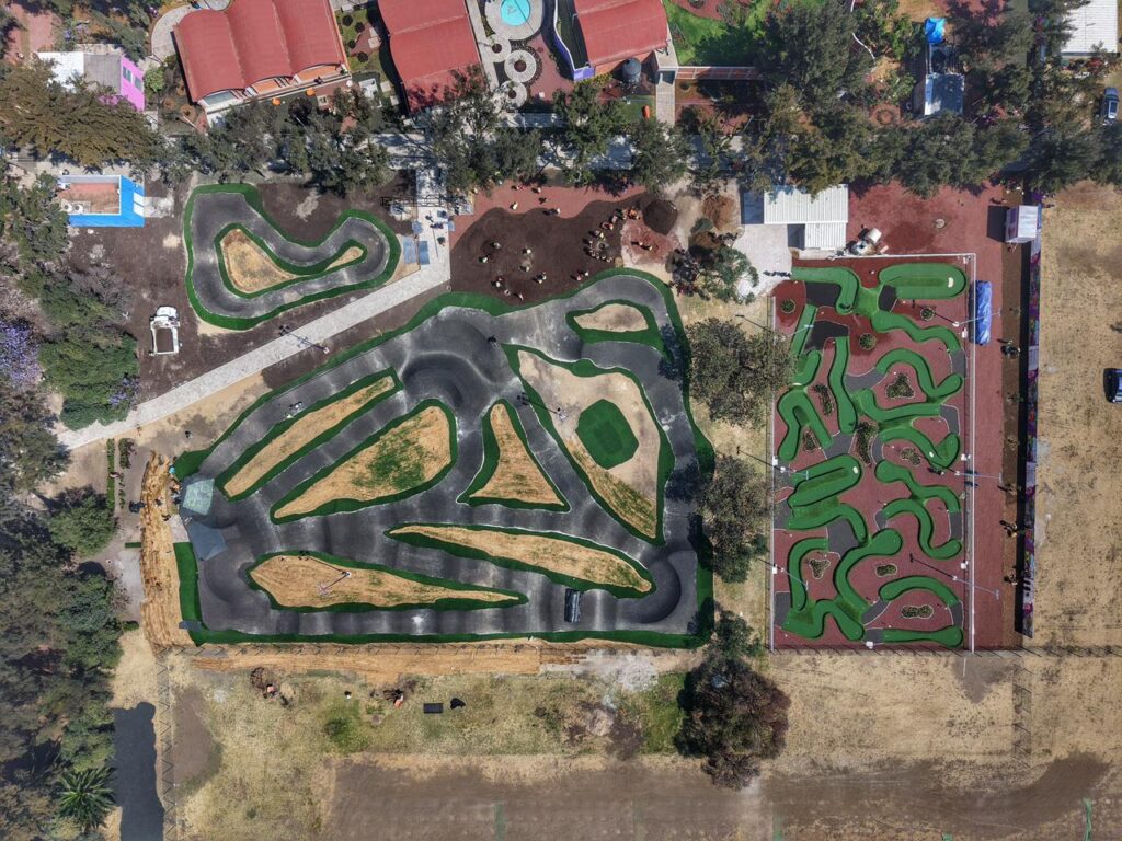Tambiém hay una pista pump track para andar en bicicleta.