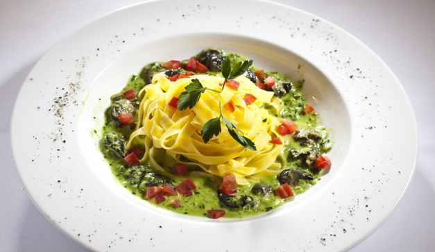 Te recomendamos mucho el confit de pato o si eres de gustos inusuales, el fettuccine cremoso con escargots (caracoles).