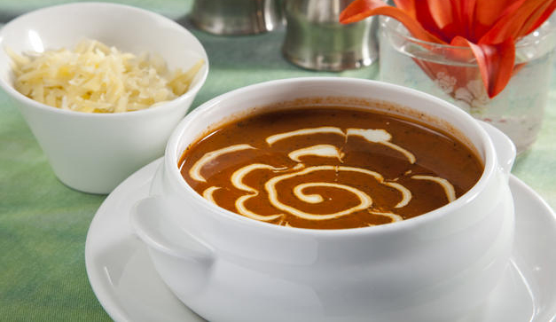La sopa de jitomate rostizado es la reina de la casa: cremosa, un poco ácida y con un toque especiado agradable. Las otras opciones las ocupan recetas que cambian todos los días, con diferentes estilos y de diversas procedencias; habas, crema de queso o champiñones son algunos ejemplos. Las sirven muy calientes, en taza ‑o en vaso biodegradable cuando son para llevar‑, acompañadas con un poco de pan.