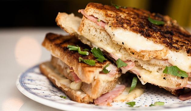La especialidad de la casa, como el nombre lo dice, son los sándwiches (croques); tienen 10 tipos con opciones para todos los gustos. Para vegetarianos, por ejemplo, está el Jacob, con falafel y queso de cabra, o la sopa de cebolla, hecha con caldo de pollo y cerveza. Pero como esta edición es para tragones tienes que probar su Doble Croque XL (tres niveles de pan, salsa bechamel, queso y jamón).