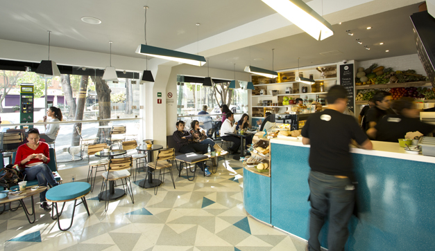 Para honrar las costumbres de antaño, la fruta y la verdura están a la vista en estantes parecidos a los de las tiendas de abarrotes. Sin embargo, el ambiente tiene un aire de modernidad. Por ejemplo, tienen servicio automatizado en el que el cliente pide lo que va a comer mediante una pantalla touch y luego sólo espera alrededor de 20 minutos para que alguno de los meseros lo lleve a su mesa.