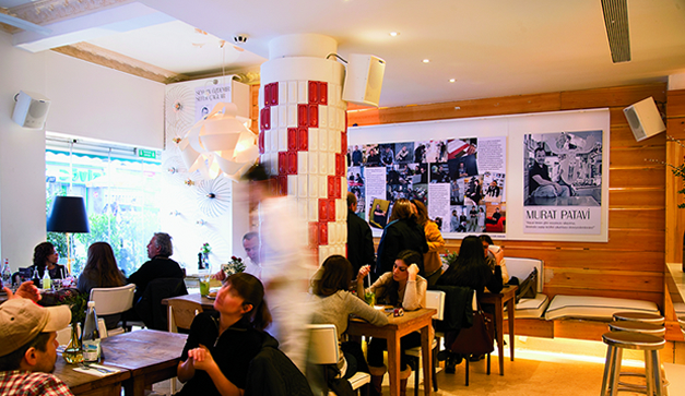 Arriba, en el restaurante, el ambiente es tranquilo. Predominan los hombres de negocios. El servicio bueno, aunque no muy rápido, ya que la pasta y la pizza se preparan al instante, por lo que de antemano piden paciencia a los comensales.