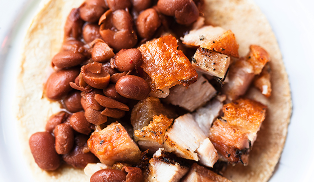 Lo más codiciado viene desde Mérida: el castacán, un corte sacado del estómago del cerdo pelón, oriundo de Yucatán. Tiene grasa cubierta con una laminita de piel rostizada, lo sirven con un gran corn chowder de elote dulce rostizado con chile poblano y un toque de jalapeño. Otro representante de la cocina ahumada es la salchicha con frijoles. De postre, el crumble relleno de pedazos acaramelados de manzana es fantástico.