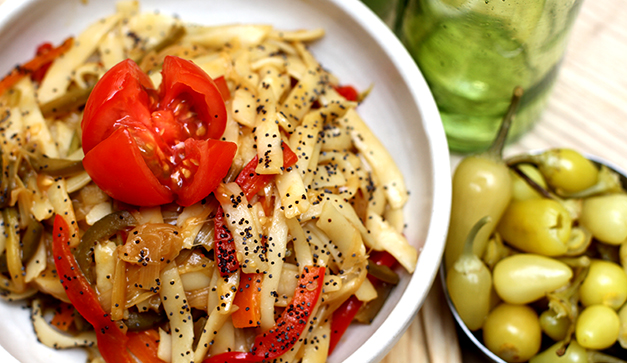 Probé también el fetuccini primavera, con un rico sabor dulce que viene del pimiento, el calabacín y la zanahoria cortados en juliana, mezclados con la pasta y una salsa de soja, jugo de naranja y un toque de azúcar. Por supuesto no me fui sin comer un poco de pizza, esta vez una de huitlacoche, queso Oaxaca, jalapeños y granos de elote sin salsa de tomate que me impresionó con su combinación de ingredientes. El maridaje perfecto lo encuentras con una cerveza fría, o su agua del día, fresca, hecha a base de frutas de temporada.