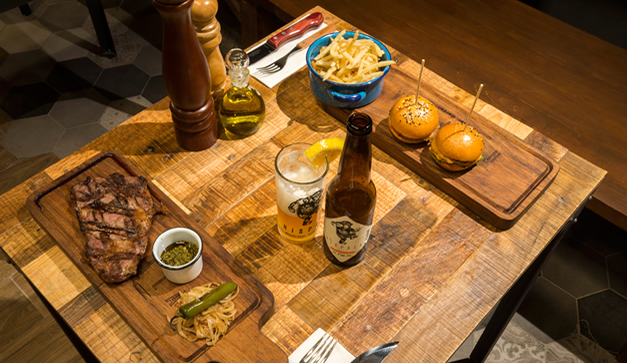 La joya de su carta son los cortes. Y en realidad es lo que vale la pena comer en este lugar, además de las tostadas de pulpo que llevan una lámina de aderezo de mayonesa y chipotle, con cubitos de aguacate y cebollín. El resto es una selección de platillos estilo cocina americana que en el paladar te dejan la sensación de haber sido descongelados, como las mini hamburguesas de sirloin -a la carne le faltaba sabor- con queso cheddar.
