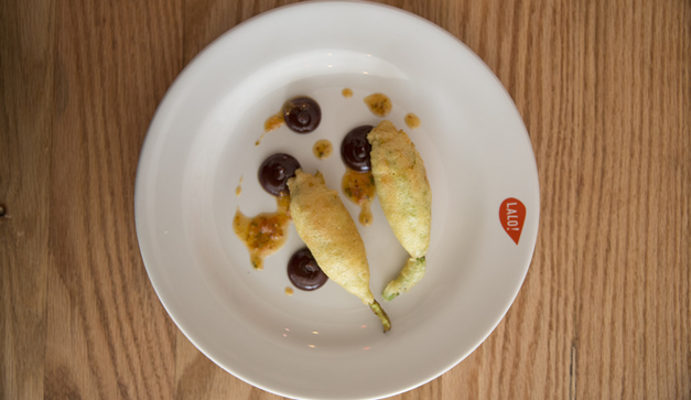 Lalo! es madrugador y abre para el desayuno con un menú corto pero matador: chilaquiles y platos como los espárragos con holandesa y huevo poché que solían servir en el brunch del Máximo. La carta se expande en el horario del almuerzo. Para empezar, hay sodas homemade, destaca la de manzanilla y helado de durazno. Para abrir el apetito, una entrada que juega con contrastes dulces, salados y crujientes es la flor de calabaza rellena de queso comté, macadamia, puré de higo y balsámico.