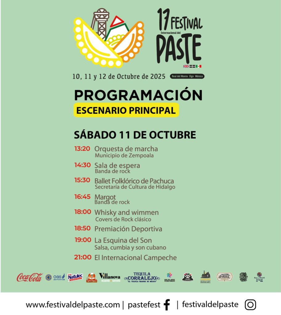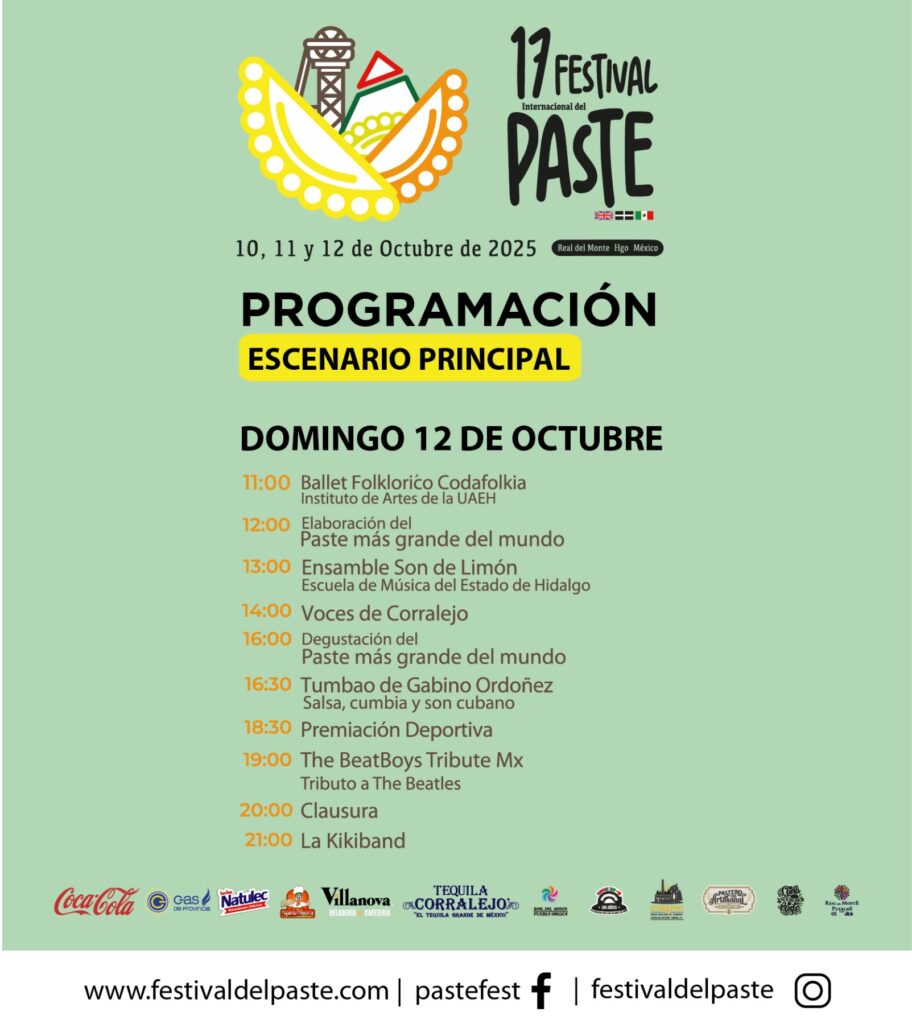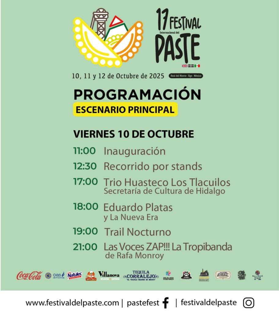 El Festival del Paste 2025 se llevará a cabo del 10 al 12 de octubre, a partir de las 11:00 horas, en el Pueblo Mágico de Real del Monte, Hidalgo.