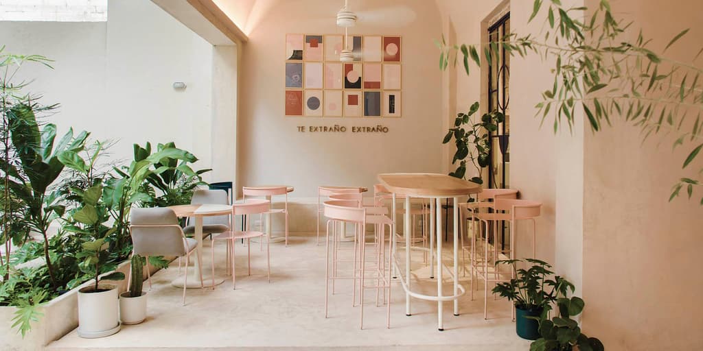 Es un pequeño espacio donde el arte, la literatura y el diseño convergen. Después de pasar por una librería, el pasillo te va preparando para un patio interior donde el mobiliario, los textiles y la paleta de colores buscan esa atmósfera íntima y muy aesthetic. Aquí podrás disfrutar un buen brunch rodeado de naturaleza y frases sacadas de libros que seguramente robarán tu atención.